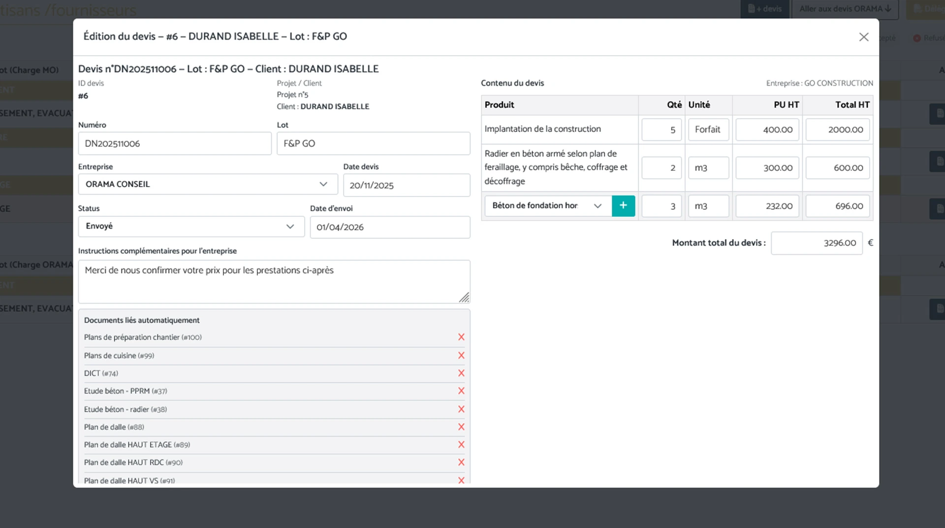 ORAMA CONSEIL est un contractant général du bâtiment (construction et rénovation) qui officie depuis peu en Lorraine. Forts d'une expérience professionnelle très riche dans le domaine et d'un excellent réseau d'entreprises et de lotisseurs, ses fondateurs ont très vite vu leur activité décoller. Il était urgent pour eux de s'équiper d'outils qui allaient leur permettre d'automatiser et sécuriser un maximum de leurs process pour pouvoir se focaliser sur l'essentiel : les projets de leurs clients. Et c'est là que j'interviens !