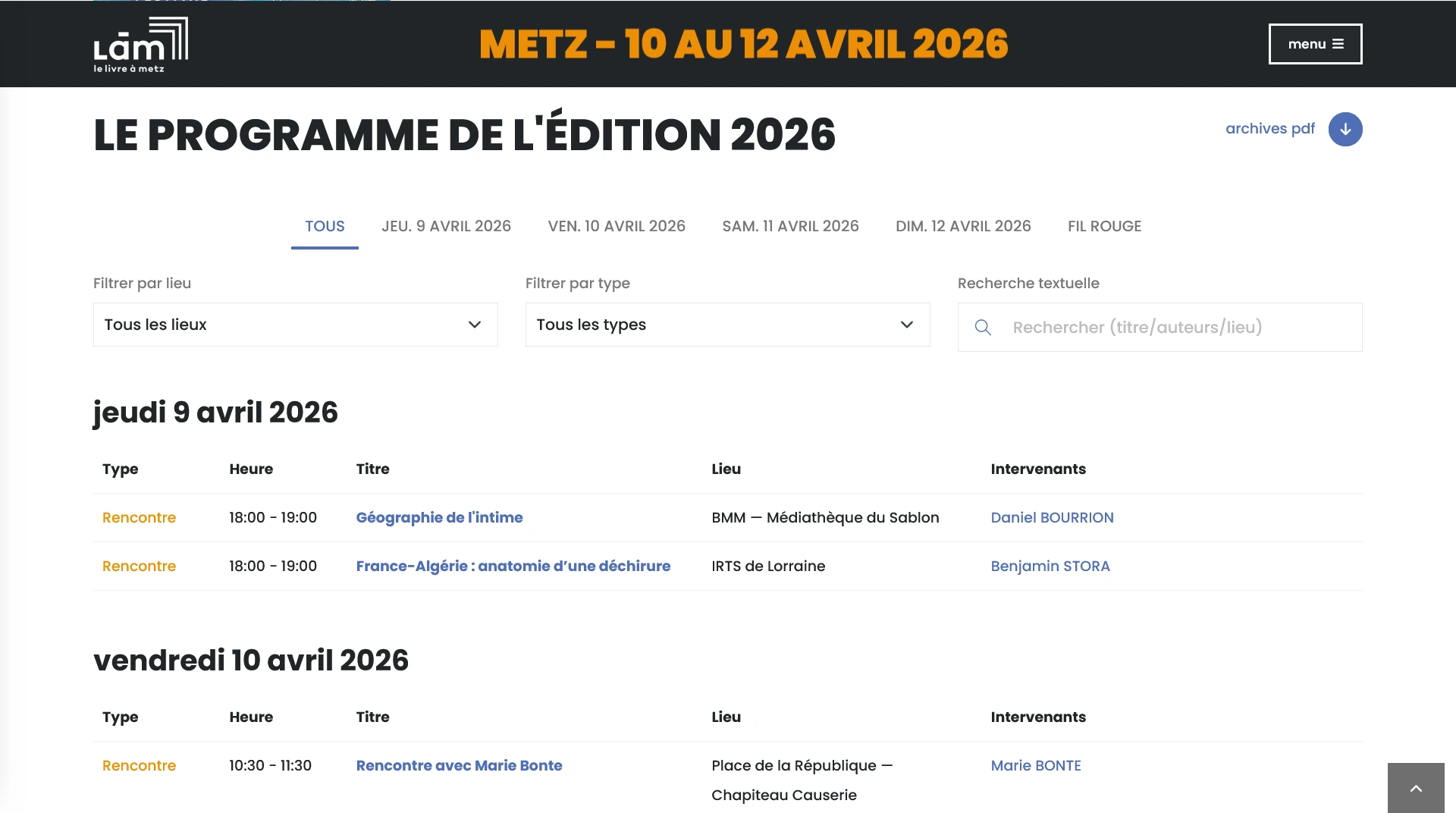 La nouvelle version du site est 100% responsive, avec un design conçu pour s'adapter à la charte graphique spécifique de chaque édition sans nécessiter d'intervention de ma part. Elle est pensée pour mettre en valeur la programmation du festival, coeur battant de ses 40 ans d'histoire.